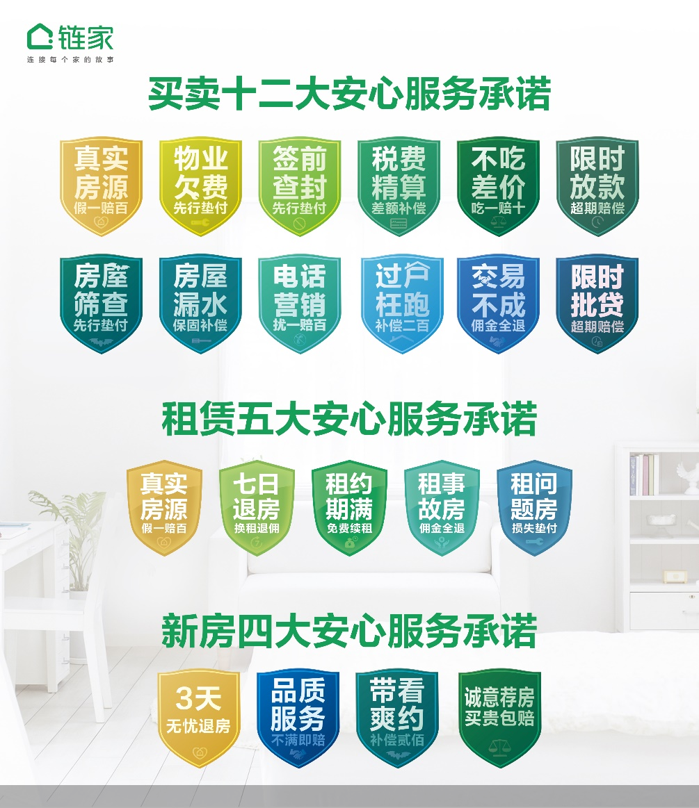 据了解,目前北京链家安心服务承诺覆盖二手、租赁、新房三大业务领域,包含交易不成佣金全退、房屋漏水保固补偿、免电话营销等21项承诺,全方位保障消费者的房产交易,每一个承诺的背后都为一个家庭增添了一份安心。