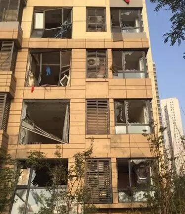 根据现场建筑分布情况,万科海港城、起航嘉园等小区就位于爆炸现场的南侧。这些楼盘距离爆炸现场约五六百米。受爆炸波及,海港城、起航嘉园两个高层小区的受损严重。