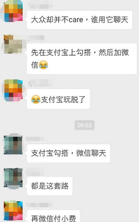 支付宝变成了个相互勾搭的 “ 中介 ”,最后大家聊天还是去微信。。。