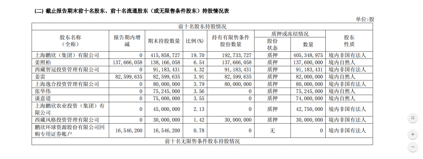 尤为值得一提的是,鹏欣资源不久前在4月18日发布了关于鹏欣集团股权质押延期的公告,鹏欣集团将部分原计划于2019年4月11日质押到期的股份延期至2019年10月11日。不过,就鹏欣集团截至4月15日近乎满仓质押的情况,鹏欣资源当时在公告中称,鹏欣集团资信状况良好,具备相应的资金偿还能力,由此产生的质押风险在可控范围之内。