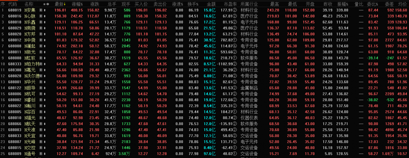 据Wind数据统计计算,25只科创板“星宿股”上市首日的平均涨幅约139.55%。回顾2009年10月30日,创业板首批28家公司集体上市之时,首日平均涨幅达到106%。科创板上市首日的整体表现远超市场预期。