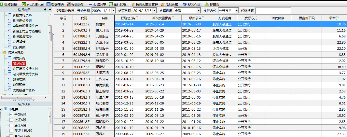 2018年10月10日,拓斯达一则公开增发A股股票预案打破沉寂多年的公开增发市场。此后,多家公司相继宣布拟公开增发。