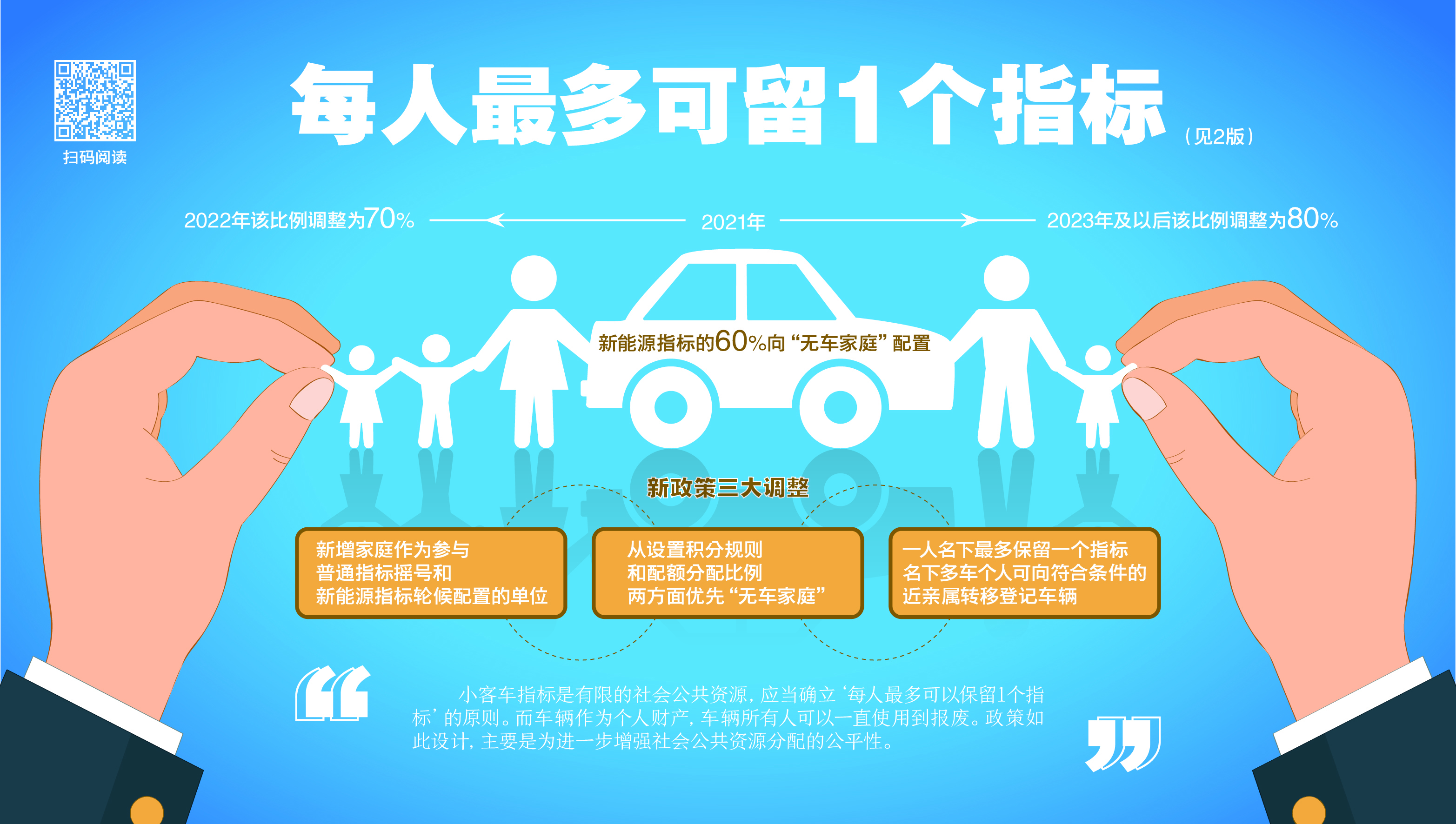 针对家庭新能源指标占比过高,影响了正在轮候新能源指标的个人利益等意见,此次新政设置了三年过渡期。即除了配置给单位的指标和营运小客车指标以外,2021年新能源小客车配置指标数量的60%优先向“无车家庭”配置,其余向个人配置;2022年度该比例调整为70%;2023年度及以后该比例调整为80%。