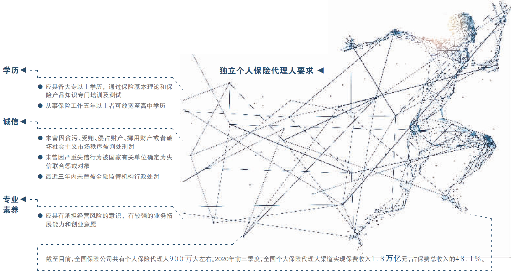 而专业素养方面,《通知》则要求独立个人保险代理人应具有承担经营风险的意识,有较强的业务拓展能力和创业意愿。