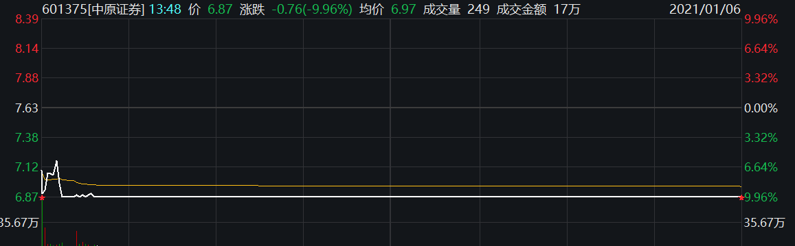 而在近2个交易日,中原证券的股价表现则稍显逊色,1月5日早盘期间一度涨停后迅速回落,当日跌幅为1.17%;1月6日再度遭遇大跌。“今日中原证券跌停,一部分原因与股东减持相关,另一部分原因则是短期涨幅过大的必然回调,背后本质上是游资在加速离场。”何南野如是说。