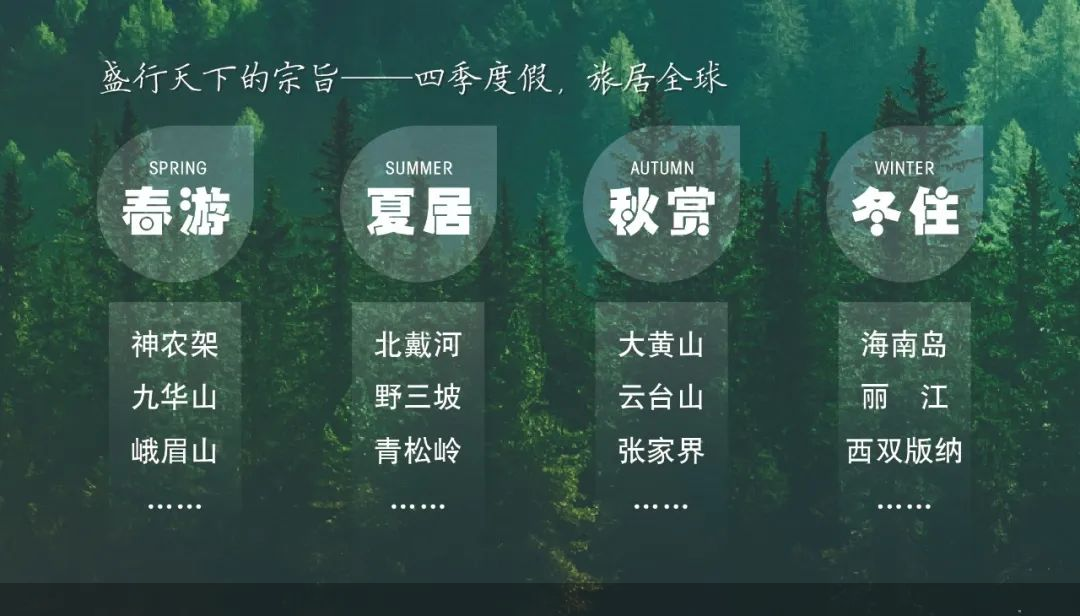 荣盛康旅推出全球换住的盛行天下旅居模式,购买一处房产即可享受N个顶级风景名胜区的旅居度假体验。自由换住,实现春游神农架,夏居北戴河,秋赏大黄山,冬住海南岛。真正实现候鸟式生活,领略全世界不同的景色,感受不一样的故事。