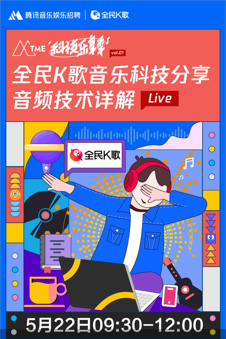 5月22日,腾讯音乐即将携手国内领先的前沿科技媒体和产业服务平台“机器之心”开启“TME科技乐享季”的首轮分享,来自全民K歌的“技术天团”将就智能录唱、歌声合成、歌唱评价等用户日常K歌体验的话题,为技术爱好者们带来干货满满的「全民K歌音乐科技分享:音频技术详解」。