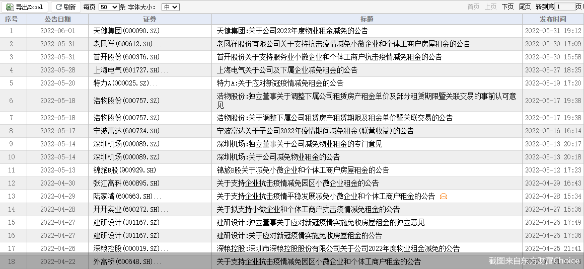 另外,今年5月还有特力A、宁波富达、深圳机场也对外披露了减免租金公告;今年4月则有张江高科、陆家嘴、开开实业、建研设计、深粮控股、外高桥、市北高新、浦东金桥等对外官宣减免小微企业、个体工商户租金。