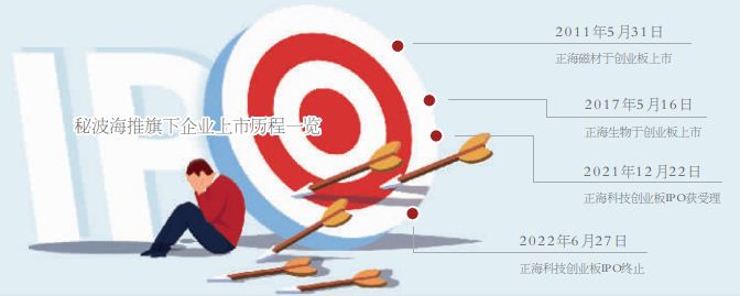 2011年,秘波海实际控制的正海磁材在深交所创业板上市;时隔六年,秘波海于2017年再添上市平台,旗下企业正海生物登陆创业板,至此,秘波海成为拥有两家创业板上市公司的民营老板。