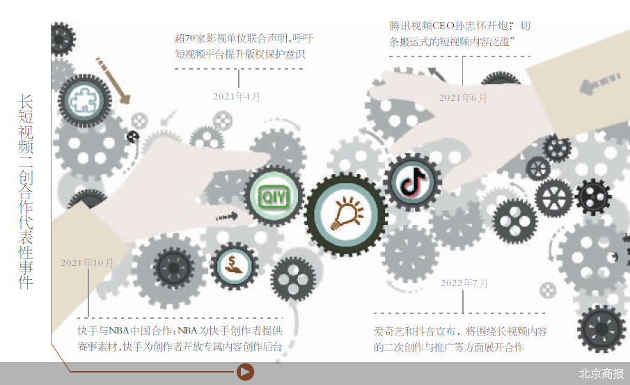 7月19日,爱奇艺和抖音宣布,将围绕长视频内容的二次创作与推广等方面展开合作,双方对解说、混剪、拆条等短视频二创形态做了具体约定。当天腾讯视频和快手被曝正就长视频二创合作进行谈判,且“诚意十足”,尽管此消息随后被腾讯视频辟谣,但快手和乐视、NBA的二创合作已在进行中,类似合作复制的可能性不小。