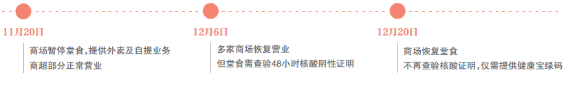 与此同时,12月21日起,北京大部分商场不再查验核酸和扫码入场,但商场的消杀并未松懈。朝阳合生汇针对商场每日2小时进行一次消杀,嘻番里商场每日进行3次消杀,确保为顾客提供安心的购物环境。