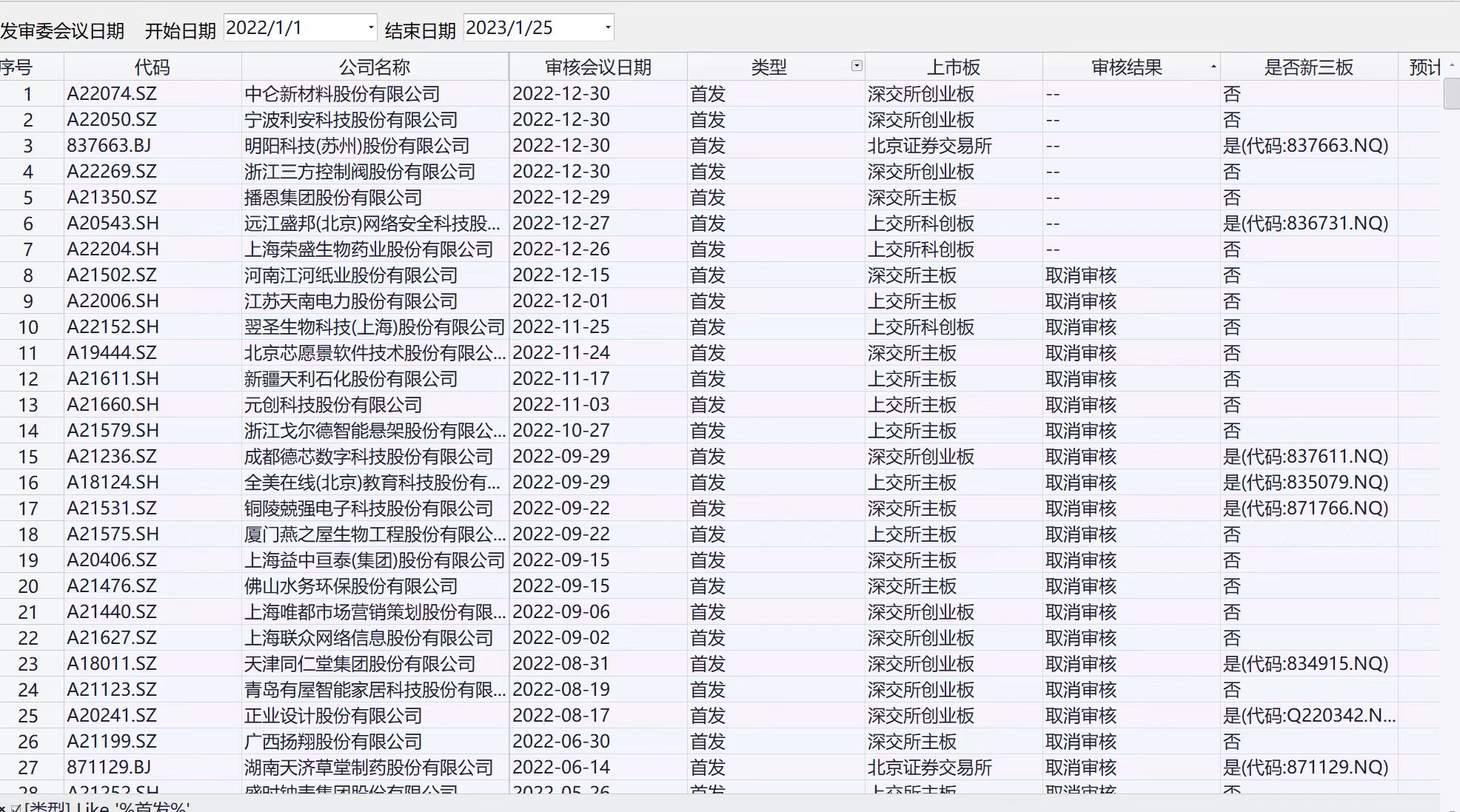 中国国际科技促进会科技产业投资分会副会长兼战略投资智库执行主任布娜新表示,伴随着注册制的推进,申报上市企业数量正不断增加,并且去年11月北交所开市,A股新增上市板块,也导致IPO审核数量大幅增多。