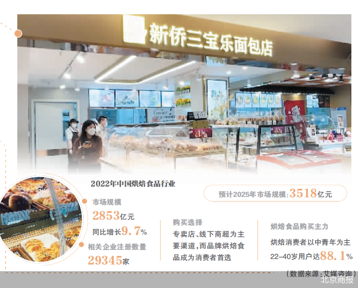 新侨三宝乐面包店始创于1985年,作为上世纪80年代首批“开放式自选面包店”之一,彼时受到消费者的追捧。北京商报记者走访多家门店发现,如今到店购买的顾客以中老年人居多。一位新侨三宝乐面包店双安商场店的消费者表示,“好多年前就开始买他们家的面包,觉得味道还不错”。不过,在大众点评上,有消费者吐槽新侨三宝乐面包店牡丹园店,“原来是加盟店,太难吃了”。据介绍,新侨三宝乐面包店牡丹园店已经开业七年。