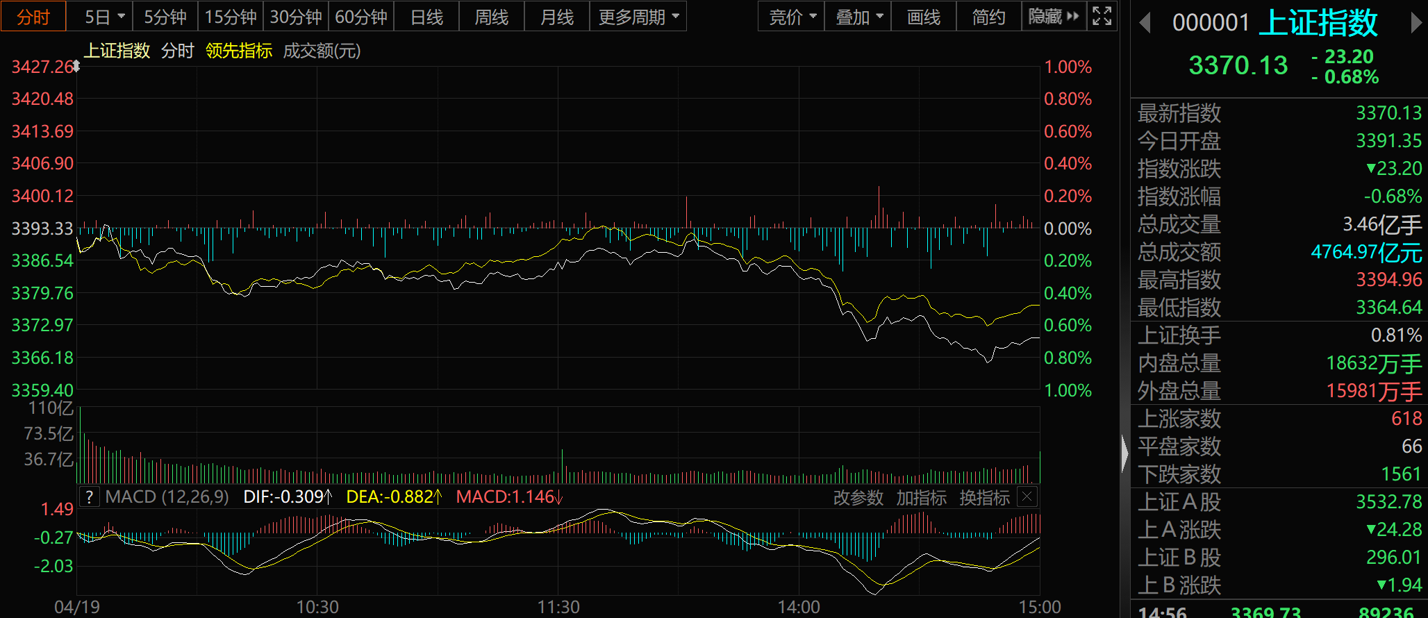 个股方面,整体跌多涨少,逾3300只个股下跌,1604股上涨。