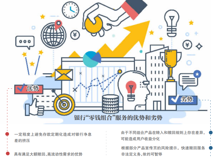 “投资‘零钱组合’也增加了用户的隐性投资成本。”何雨芮进一步表示,其一,由于不同组合产品在转入和赎回规则上存在差异,可能造成用户收益分化,若用户关注收益,就需要在购买时花更多时间仔细阅读相关规则。其二,这类产品提供的快赎额度并非银行的义务性额度,根据部分产品宣传页的风险提示,快速赎回服务非法定义务,依约可暂停。