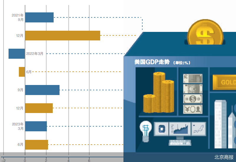 上个月,美国商务部经济分析局(BEA)公布的首次预估数据显示,美国2023年第二季度实际国内生产总值(GDP)年增长率为2.4%,高于第一季度的2%。但当地时间8月30日,美国商务部经济分析局公布二读数据,年化季率修正值为2.1%,较一读数据2.4%下调0.3个百分点,同时,一季度GDP终值也由2.4%下修为2%。