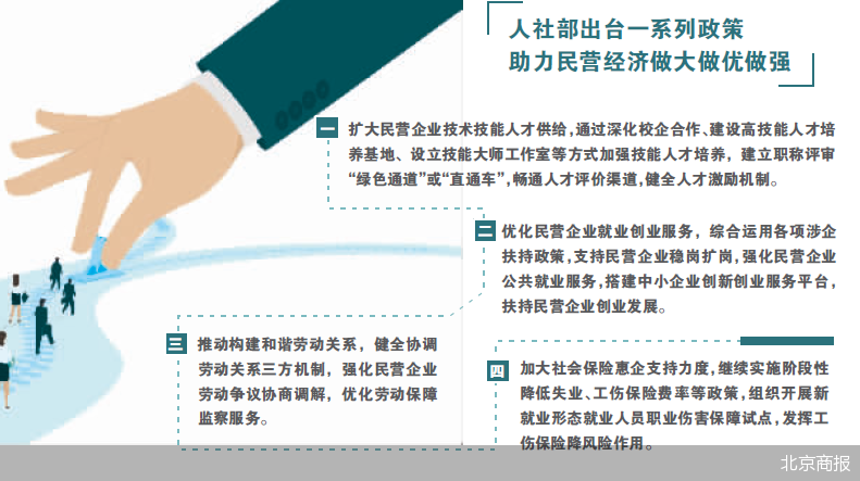 除了在职称评审上更进一步外,《通知》还提出不断优化民营企业就业创业服务和加大社会保险惠企支持力度。在优化民营企业就业创业服务方面,《通知》表示,综合运用各项涉企扶持政策,支持民营企业稳岗扩岗,强化民营企业公共就业服务,搭建中小企业创新创业服务平台,扶持民营企业创业发展。