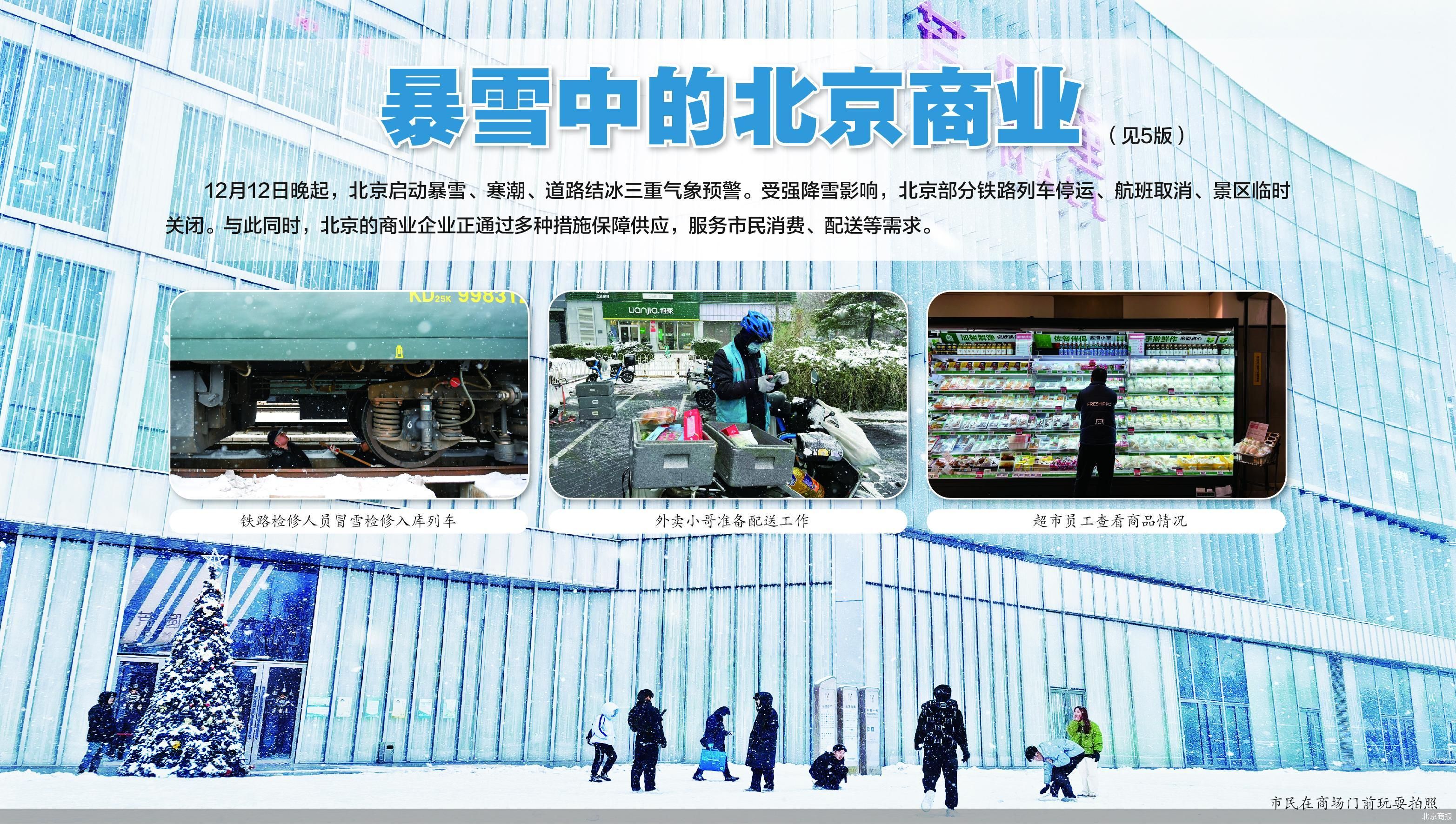 大雪为北京商业增添了氛围感,也考验着企业的应变能力。12月13日,北京商报记者走访商圈看到,北京多家商场铲雪的同时,还将雪做成了装饰,保障消费者安全逛街,也营造了应季的消费氛围。针对大雪天气的低温、地面湿滑等问题,北京购物中心更是在后勤方面加大管理力度,推出了多种应急方案,保障场内供暖、督促商户加大备货量,保证消费者的体验。