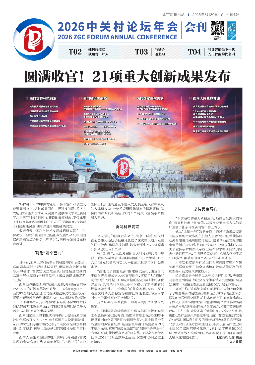 3月29日,2026中关村论坛年会以发布21项重大成果圆满收官。